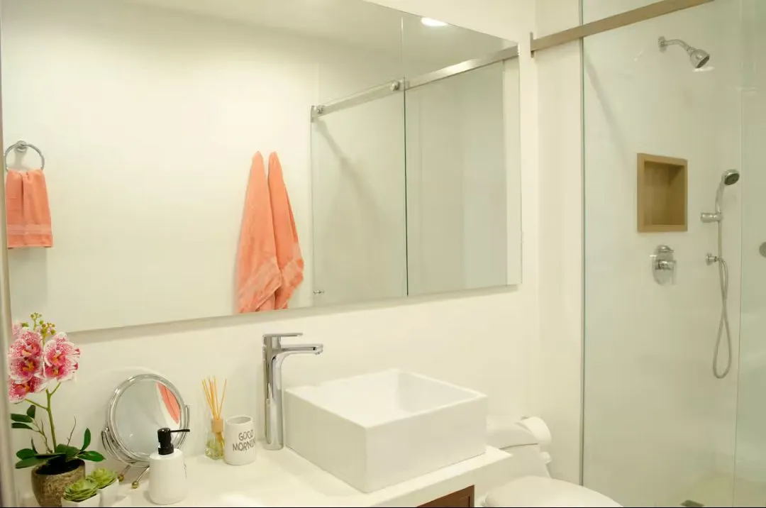 Disfruta de un dormitorio abierto, amplio y luminoso, cuenta con una cama king.